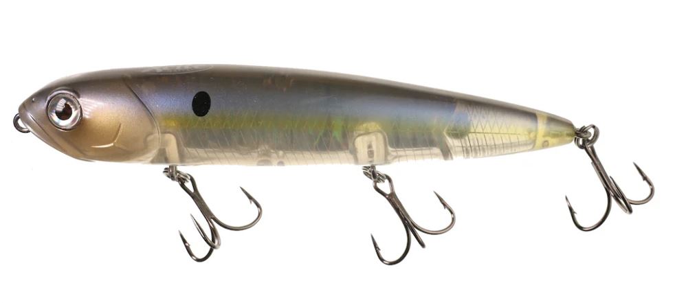 - Specs - 5 inch length. Weighs 3/4oz. Outfitted with Mustad #4 triple grip hooks, 3-D eyes and high quality paint.The 'Secret' is its perfect balance of line connect placement and ball weight in the rear which makes it the easiest walking bait on the market.Glass Beads in the head give off a unique sound that draws fish in from long distances.Lure is FREE (Just Cover S&H). All we ask is for feedback and to cover the small shipping cost.